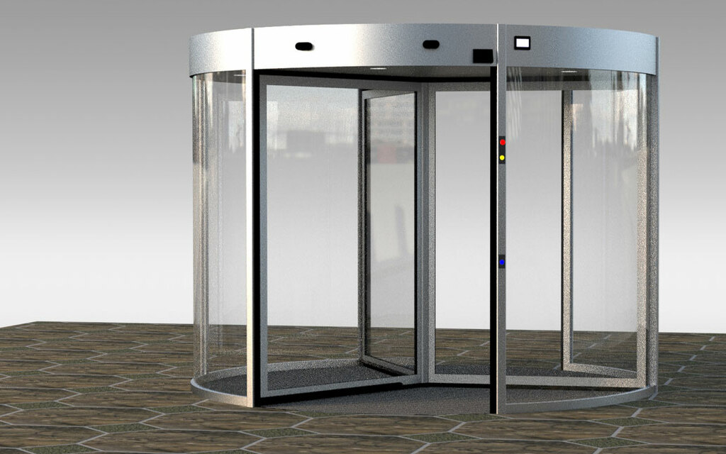 Во втором, дверь постоянно вращается на скорости около 1 об/мин. Скорость увеличивается до рабочей при приближении посетителя, и вновь снижается, как только человек прошел через дверь.