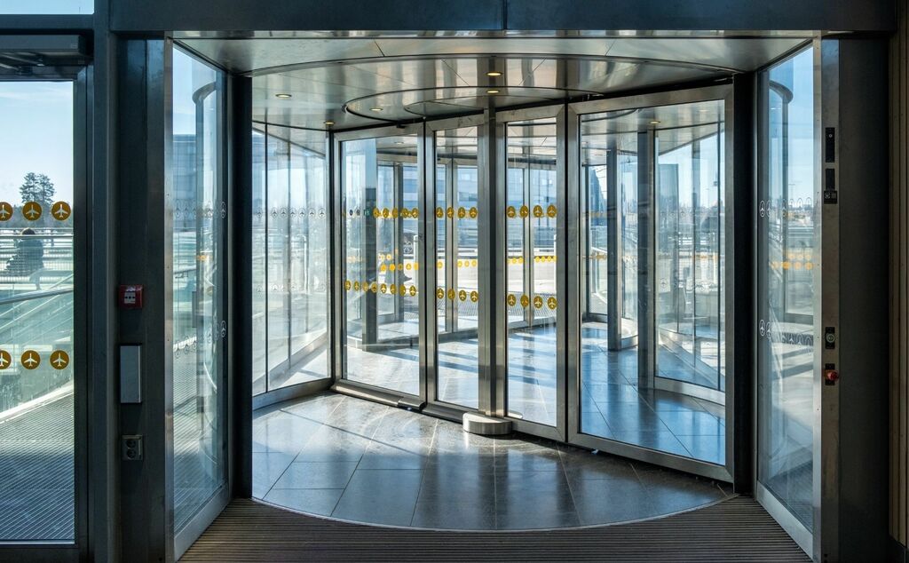 Когда дверь находится в состоянии покоя, все ее дверные створки соприкасаются либо с торцевой стойкой, либо с барабаном. Это максимизирует эффект уплотнения двери и максимально предотвращает проникновение воздуха, тем самым экономя много энергии по сравнению с распашными или раздвижными дверями.