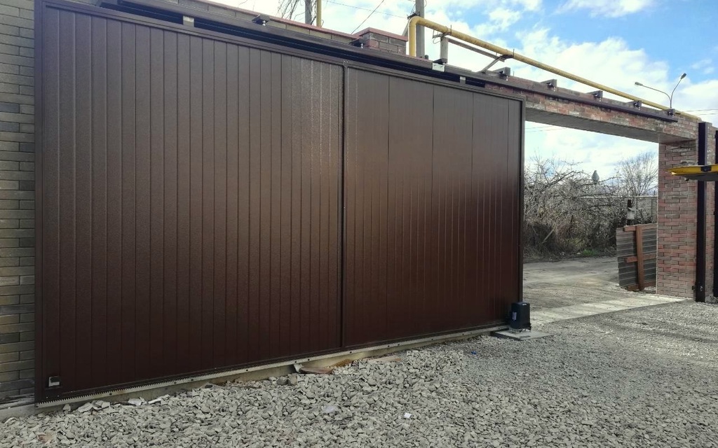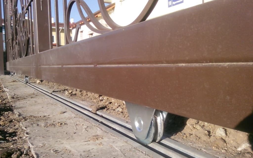 В нижней части створки ворот данного типа предусмотрены ролики, которые ездят по специальным рельсам. При открытии створка сдвигается на ширину проезда.